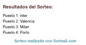 Lista de participantes: Porto, Milan, inter, Valencia.