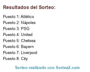 Resultados del sorteo: