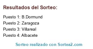 Lista de participantes: Albacete, Zaragoza, B.Dormund, Villareal.
