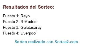 Lista de participantes: Liverpool, Rayo, Galatasaray, R.Madrid.