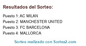 Lista de participantes: MANCHESTER UNITED, MALLORCA, AC MILAN, FC BARCELONA.