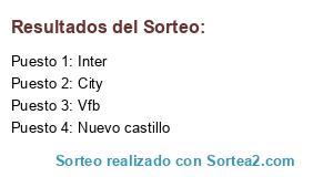 Lista de participantes: Vfb, Inter, City, Nuevo castillo.