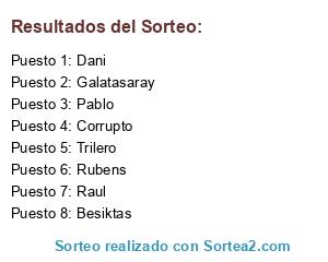 Lista de participantes: Pablo, Trilero, Dani, Besiktas, Rubens, Raul, Corrupto, Galatasaray.