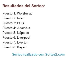 Lista de participantes: Nápoles, Juventus, Liverpool, Bayern, Wolsburgo, PSG, Inter, Everton.