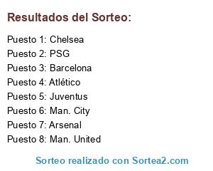 Lista de participantes: Man. United, Man. City, Arsenal, Atlético, Barcelona, PSG, Chelsea, Juventus.
