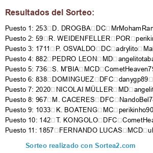 Resultados del sorteo: