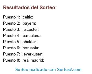 Lista de participantes: Arsenal, Tottenham, Real Madrid, Chelsea, Sevilla, Liverpool, Atlético, Napoli.