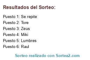 Lista de participantes: Zeus, Miki, Lumbres, Tore, Raul, Se repite.
