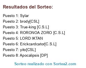Lista de participantes: brody[CSL], Sylar, LORD IKTAN, RORONOA ZORO [C.S.L], True-king [C.S.L], yito[CSL], Erickcardcator[C.S.L], Apocalipsis [DP].