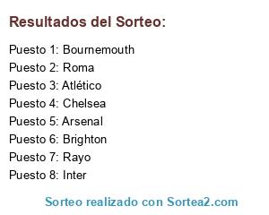 Lista de participantes: Bournemouth, Rayo, Roma, Inter, Chelsea, Brighton, Arsenal, Atlético.