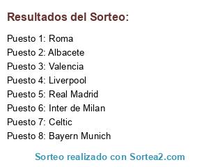 Lista de participantes: Celtic, Inter de Milan, Real Madrid, Bayern Munich, Albacete, Roma, Liverpool, Valencia.
