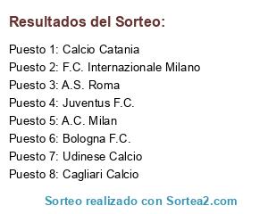 Lista de participantes: A.C. Milan, A.S. Roma, Bologna F.C., Udinese Calcio, Juventus F.C., Cagliari Calcio, F.C. Internazionale Milano, Calcio Catania.