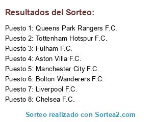 Lista de participantes: Aston Villa F.C., Bolton Wanderers F.C., Chelsea F.C., Fulham F.C., Liverpool F.C., Manchester City F.C., Queens Park Rangers F.C., Tottenham Hotspur F.C..