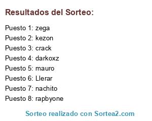 Lista de participantes: darkoxz, zega, mauro, crack, kezon, Llerar, nachito, rapbyone.