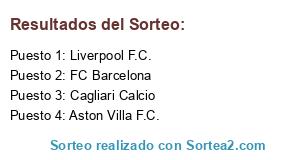 Lista de participantes: FC Barcelona, Cagliari Calcio, Aston Villa F.C., Liverpool F.C..