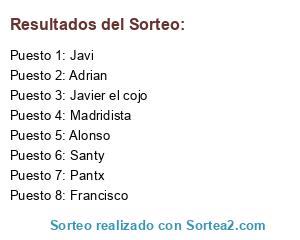 Lista de participantes: Alfonso, Rubiales, Cristián, Jesus, Omar, David, Kisko, Manuel Rojo.