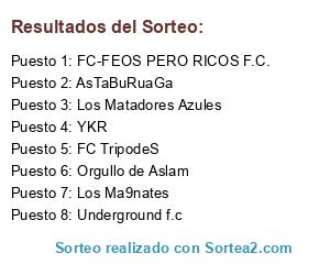 Lista de participantes: FC-FEOS PERO RICOS F.C., Underground f.c, AsTaBuRuaGa, YKR, Los Matadores Azules, Orgullo de Aslam, FC TripodeS, Los Ma9nates.