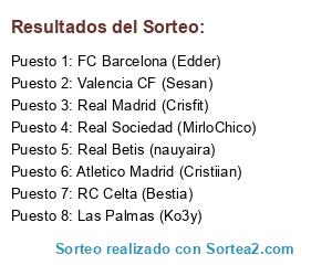 Lista de participantes: Las Palmas (Ko3y), Real Betis (nauyaira), RC Celta (Bestia), Real Sociedad (MirloChico), Real Madrid (Crisfit), Atletico Madrid (Cristiian), FC Barcelona (Edder), Valencia CF (Sesan).