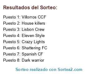 Lista de participantes: Eleven Style, Dark warrior, House killers, Lisbon Crew, Villorros CCF, Shattering FC, Crazy Lights, Spanish CF.