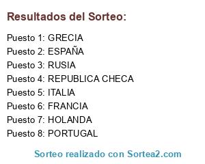 Lista de participantes: REPUBLICA CHECA, PORTUGAL, GRECIA, RUSIA, ITALIA, ESPAÑA, FRANCIA, HOLANDA.
