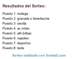 Lista de participantes: deportivo, ath.bilbao, betis, malaga, napoles, sevilla, ac.milan, granada o fenerbache.