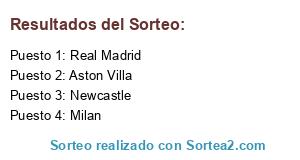 Lista de participantes: Newcastle, Milan, Aston Villa, Real Madrid.