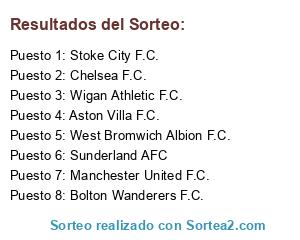 Lista de participantes: Aston Villa F.C., Bolton Wanderers F.C., Chelsea F.C., Manchester United F.C., Stoke City F.C., Sunderland AFC, West Bromwich Albion F.C., Wigan Athletic F.C..