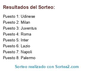 Lista de participantes: AC Milan, Inter, Juventus, Lazio, Napoli, Roma, Palermo, Udinese.
