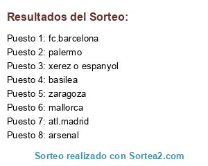 Lista de participantes: mallorca, fc.barcelona, arsenal, basilea, zaragoza, palermo, atl.madrid, xerez o espanyol.