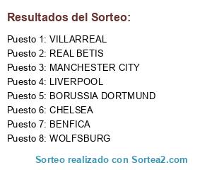Lista de participantes: CHELSEA, REAL BETIS, WOLFSBURG, MANCHESTER CITY, VILLARREAL, BENFICA, LIVERPOOL, BORUSSIA DORTMUND.