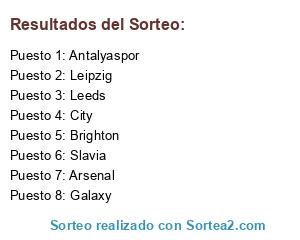 Lista de participantes: Arsenal, Antalyaspor, Leeds, Leipzig, Brighton, City, Galaxy, Slavia.