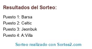 Lista de participantes: Jeonbuk, Barsa, A:Villa, Celtic.