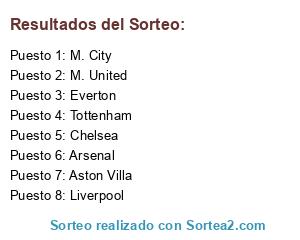 Lista de participantes: Arsenal, Aston Villa, Chelsea, Everton, Liverpool, M. City, M. United, Tottenham.