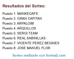 Lista de participantes: ARPALO88, ARQUILLOS, SERGI TEAM, GRAN CAPITAN, VICENTE PEREZ BEGINES, REAL SABINILLAS, JOSE MANUEL FLOR, MANKEGAFE.