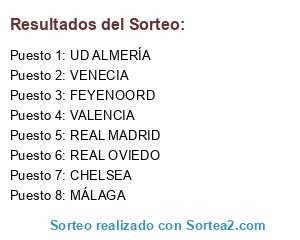 Lista de participantes: RIVER PLATE, LIVERPOOL, MALAGA, UD LAS PALMAS, VILLARREAL, MANCHESTER UNITED, FIORENTINA, BURGOS.
