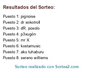 Lista de participantes: dR. poxolo, p3xugón, mr X, sereno willïems, dr xokotroll, kostamusic, pignoise, aku tuhaburu.