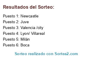 Lista de participantes: Juve, Boca, Milán, Newcastle, Lyon/ Villareal, Valencia /city.
