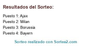 Lista de participantes: Bayern, Borussia, Ajax, Milan.