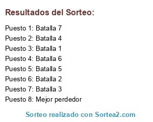 Lista de participantes: Batalla 1, Batalla 2, Batalla 3, Batalla 4, Batalla 5, Batalla 6, Batalla 7, Mejor perdedor.