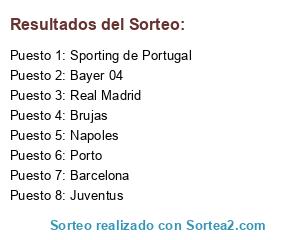 Lista de participantes: Porto, Barcelona, Juventus, Sporting de Portugal, Brujas, Bayer 04, Napoles, Real Madrid.