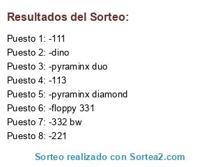 Lista de participantes: -pyraminx, -pyraminx diamond, -dino, -gimmick, -floppy 331, -332 bw, -pyraminx duo, -221, -113, -111.