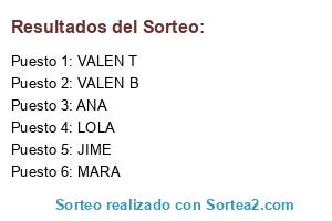 Lista de participantes: MARA, VALEN B, LOLA, VALEN T, ANA, JIME.