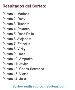 Lista de participantes: ROSY, CARLOS, ROSA DELIA, TEODORO, MARIANA, JAVIER, ALEJANDRA, VICKY, LUCIA, POLANCO, ESTELITA, AMPARITO, VICTOR, JULIA.