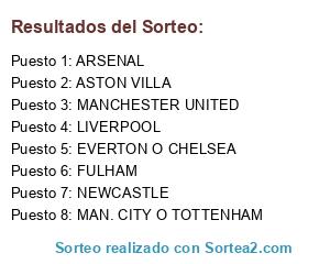 Lista de participantes: Aston Villa, Everton, Manchester United, Manchester City, Newcastle, Liverpool, Tottenham, Chelsea, Fulham, Arsenal.