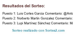 Este sorteo ha sido certificado por Sortea2. Sortea2 garantiza que: