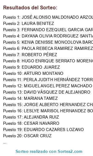 Resultados del sorteo: