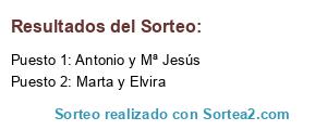 Lista de participantes: Marta y Elvira, Antonio y Mª Jesús, Gerardo y Carolina, Sonia y Ana, Silbia y Alberto, Nely y Luisa, Cristina y Gorka, Luisa y Jorge, Yolanda y Jorge, Irene y Daniel.