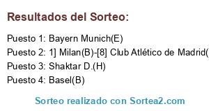 Lista de participantes: 1] Milan(B)-[8] Club Atlético de Madrid(A), Basel(B), Bayern Munich(E), Shaktar D.(H).