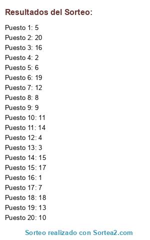 Resultados del sorteo: