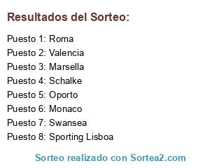 Lista de participantes: Valencia, Roma, Swansea, Monaco, Sporting Lisboa, Oporto, Schalke, Marsella.